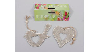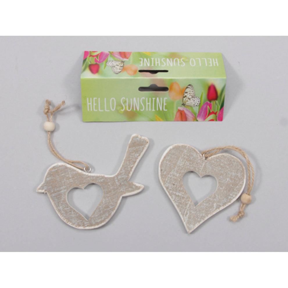 2 Holzvogel / Herz / Aufhänger sortiert Weiß 10,5 x 10,5 cm