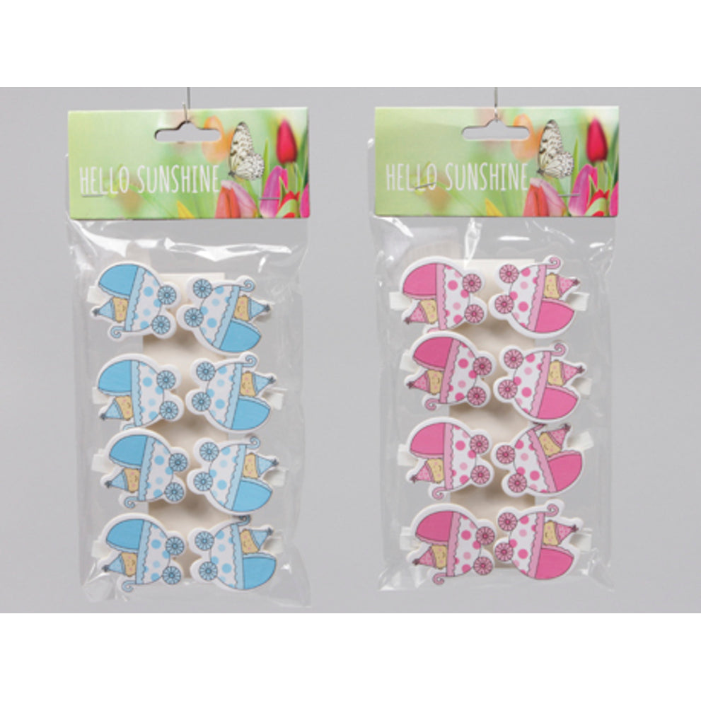 PBH. 8 Holzwiegen / Clip rosa / blau 3,5 cm