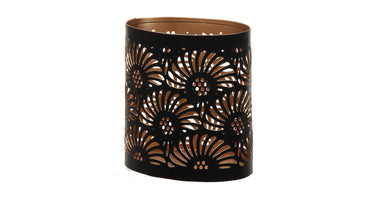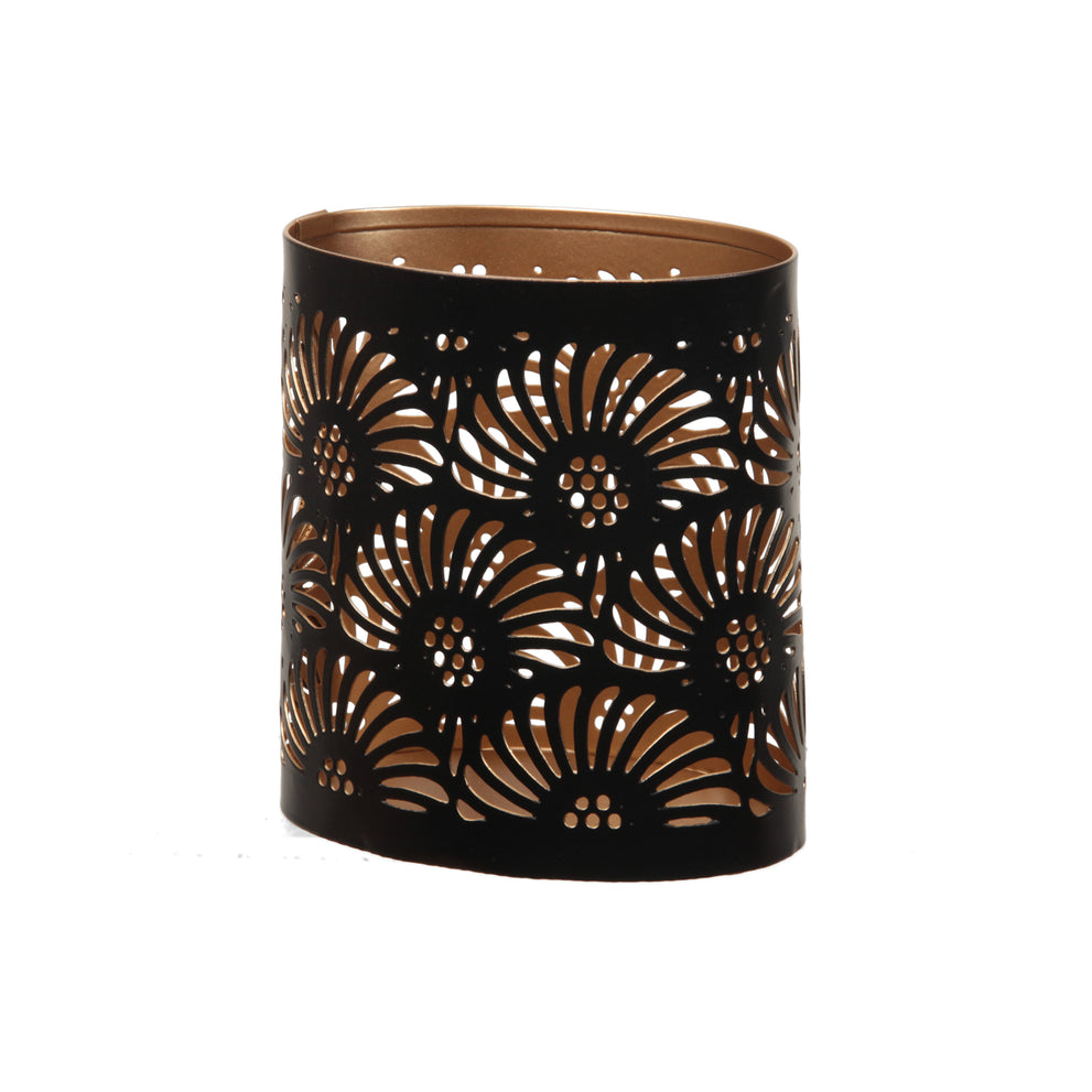 St. 1 Metall-Kerzenhalter ''Fächer'' oval schwarz/gold 9x6x10cm