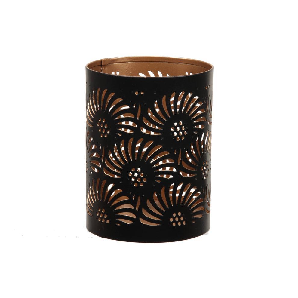 St. 1 Metall-Kerzenhalter ''Fächer'' schwarz/gold Ø8x10cm