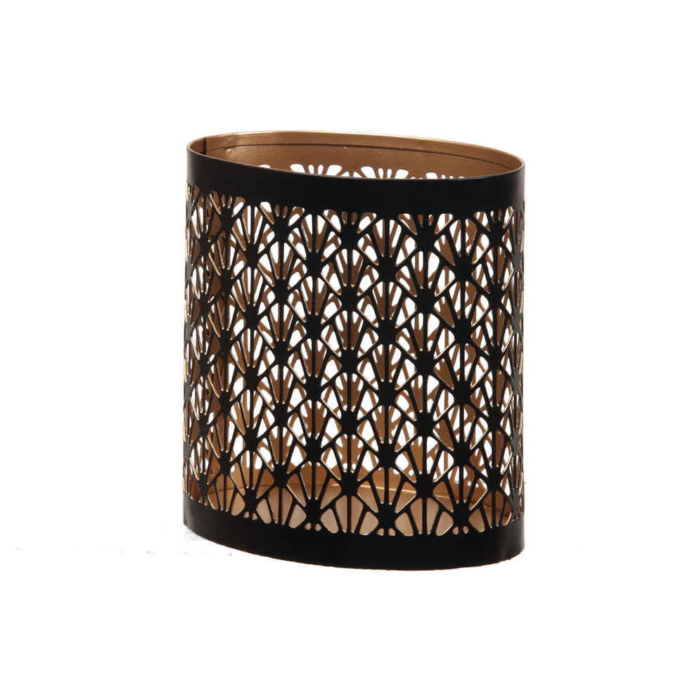 St. 1 Metall-Kerzenhalter ''Krone'' oval schwarz/gold 9x6x10cm