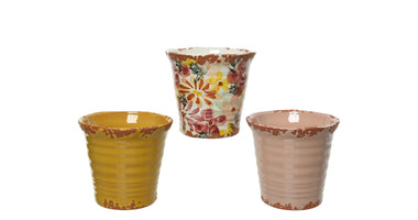 Pflanzgefäß ''Frühling'' Terrakotta 3 Farben sortiert H.13.5cm T.14cm