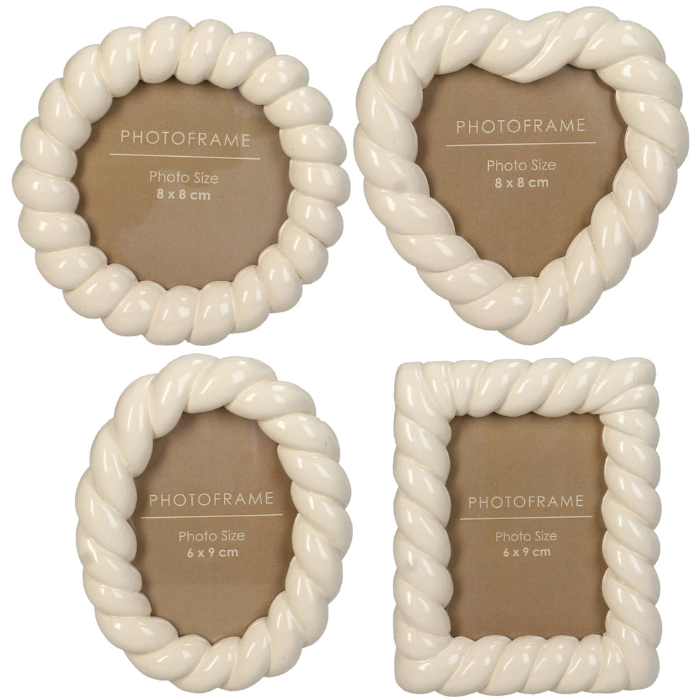 Photo Frame Twisted Polyresin Ivory 6x9cm 4 assortie