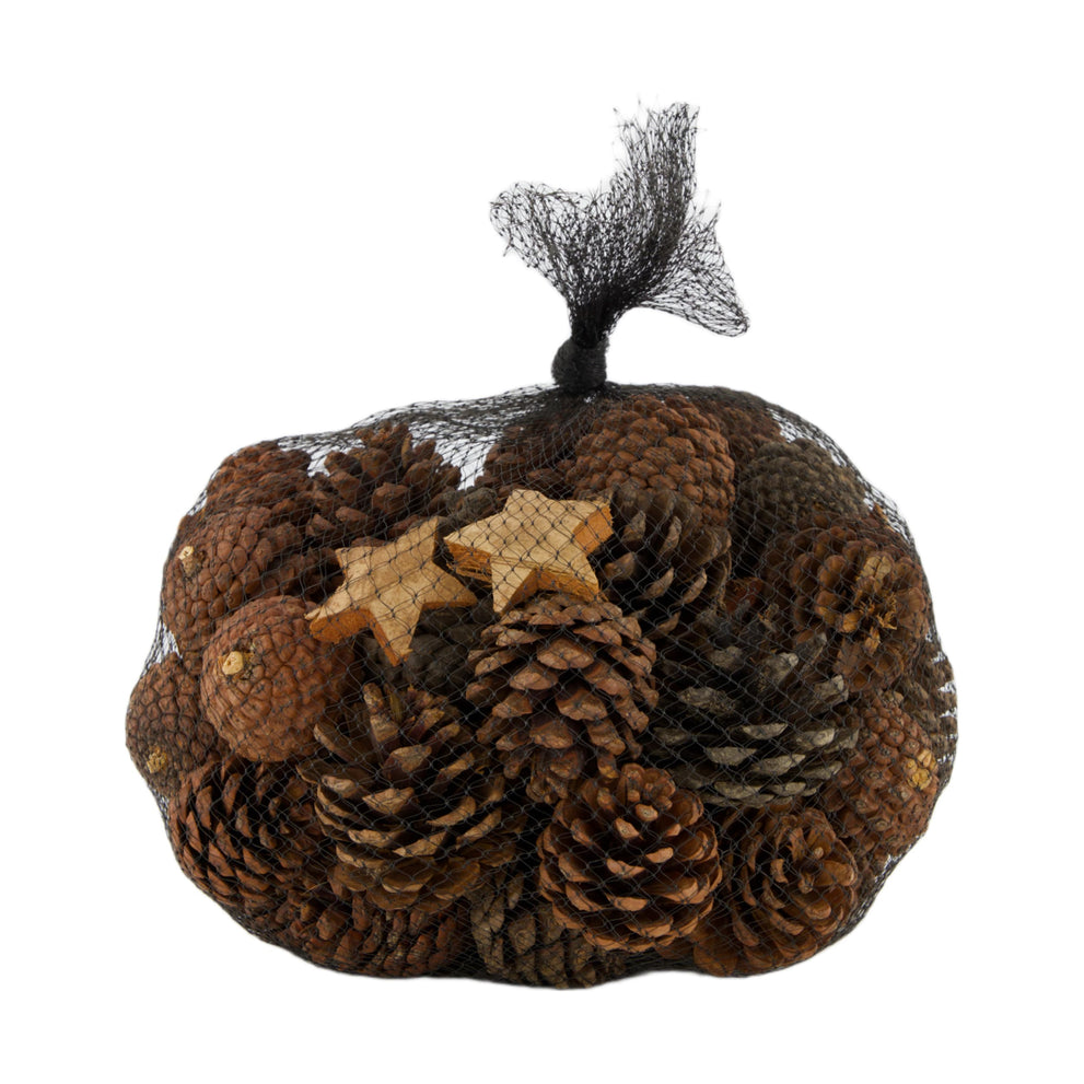 Pinienzapfen mit 10 Kokossternen Natur 1kg Natur