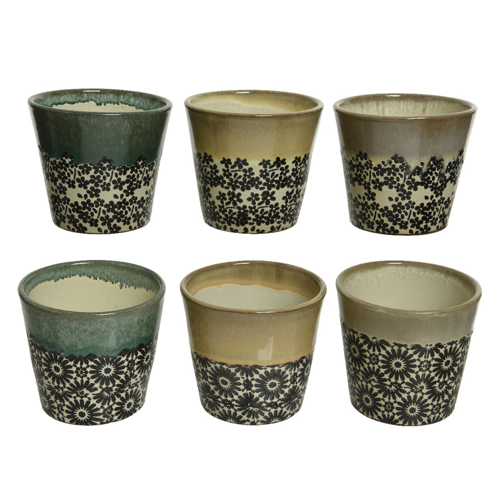 Pflanzer ''Blume'' Terrakotta 6 sortiert H.12.8cm T.14cm