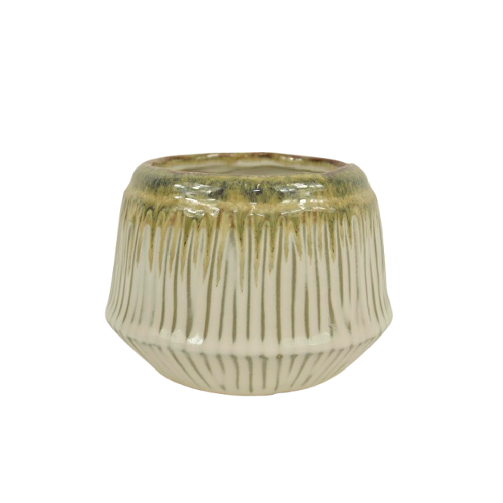 Keramiktopf glasiert D14x10,3H Creme/Weiß