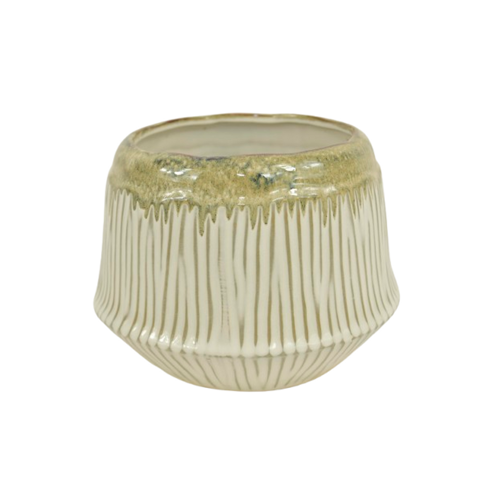 Keramiktopf glasiert D20x14,8 cm, creme/weiß