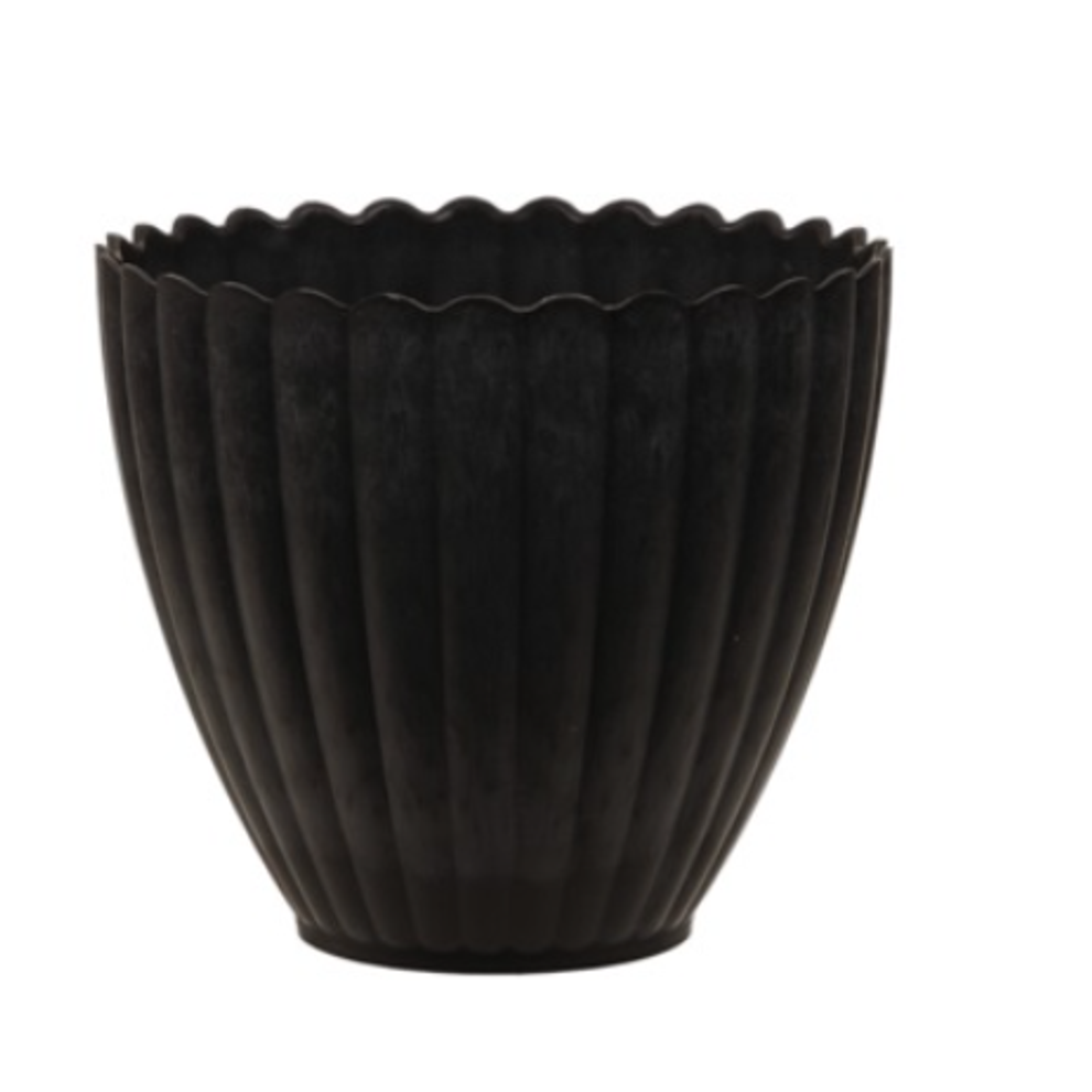 Topf mit gewelltem Rand, grau, D16 H13cm