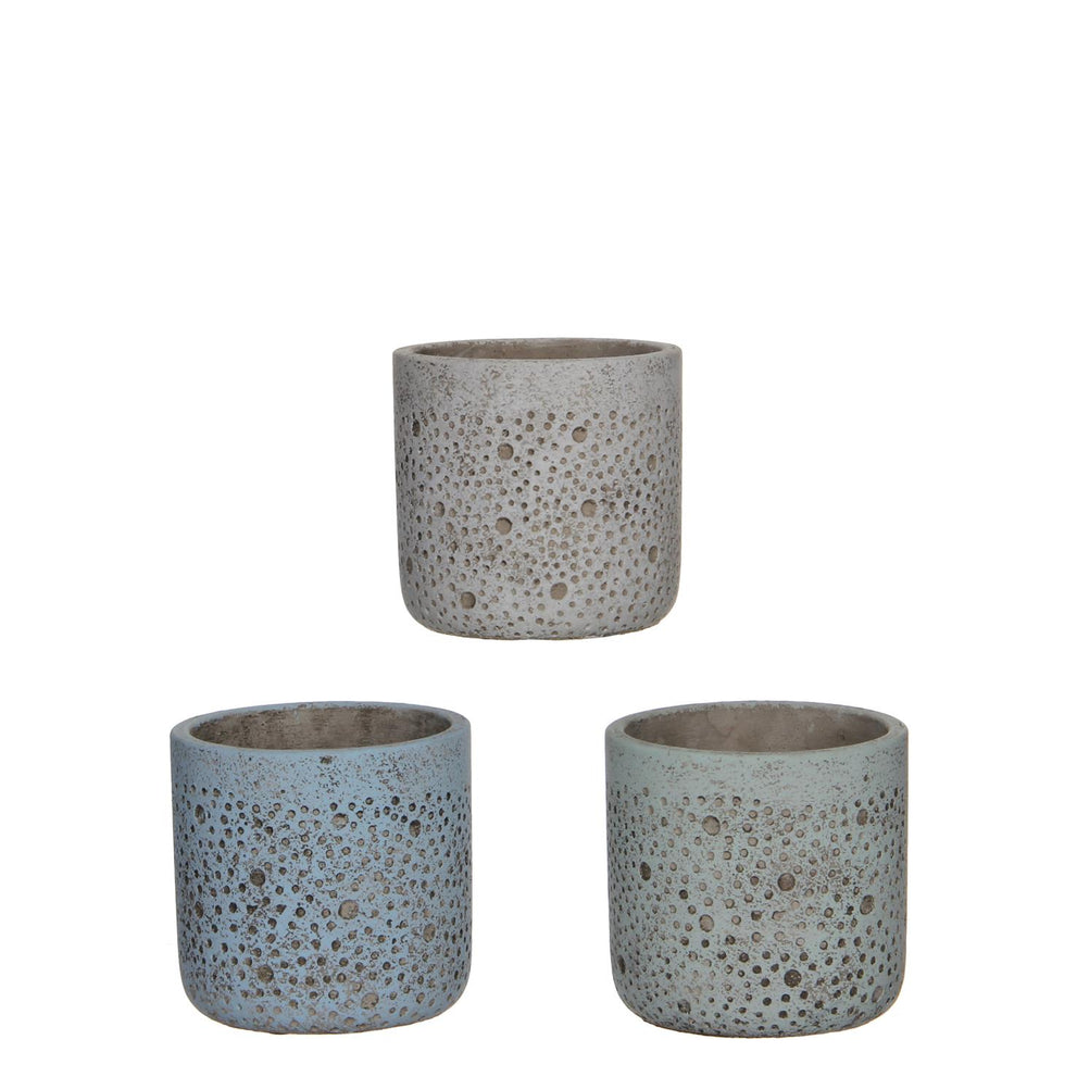 Pot rond l.blauw l.groen wit 3 assorti - h11,5xd12,5cm