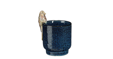 Blauer Blumentopf mit Vogelmotiv - H17 x D11 cm