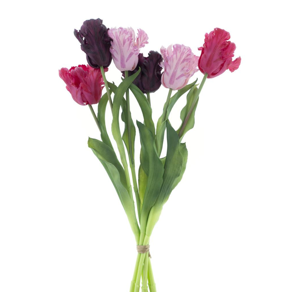 Real Touch Parrot tulip bundle Sally X6 aubergine/mauve/pink combo 36cm