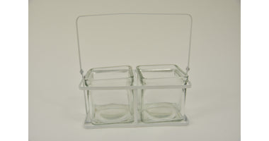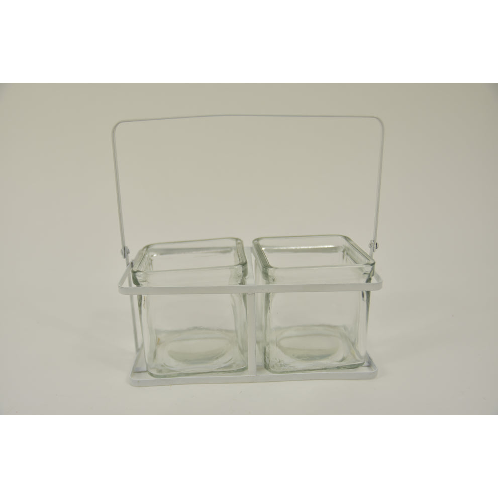 Gestell Metall weiß mit 2 Batteriegläsern 17x9x8/17cm