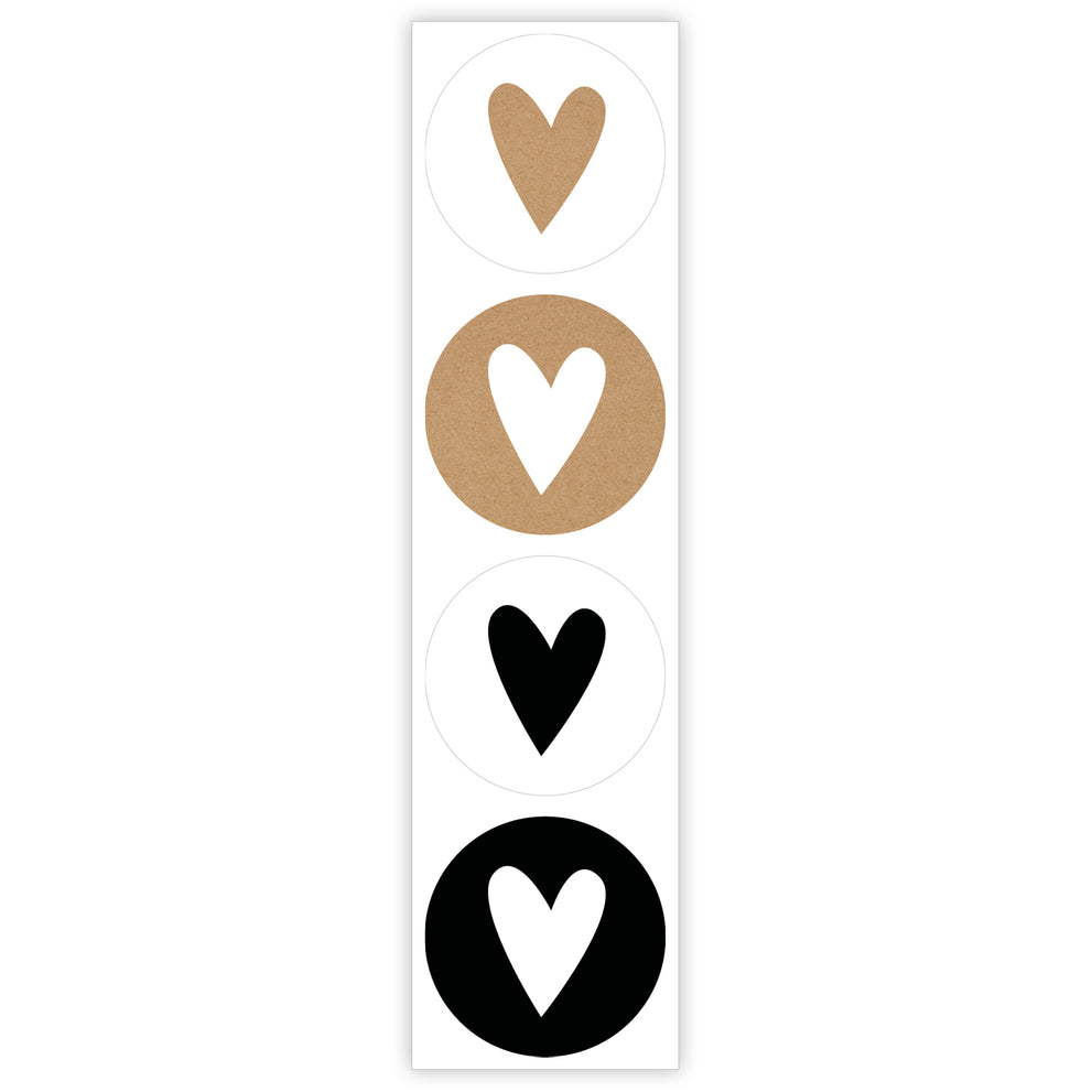 Rolle mit 500 Etiketten „Herz geschlossen“ Ø35mm natur/schwarz-weiß Kombi