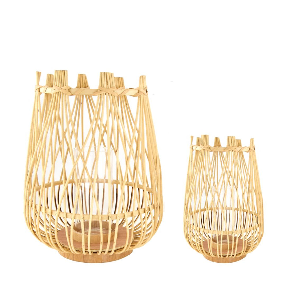 S/2 Laterne aus Sperrholz mit Glas Ø28x36cm Natur