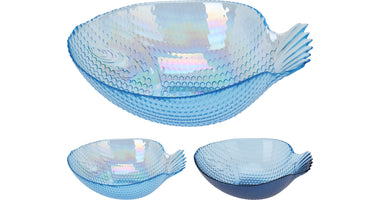 GLAS-SCHALE FISCHFORM 26X20X8,5CM 2 ASSORTIERT
