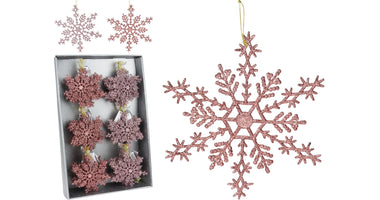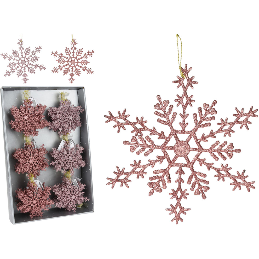 SCHNEEFLOCKE HÄNGEDEKO 15CM 2FACH SORTIERT ROSA MIX GLITTER