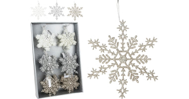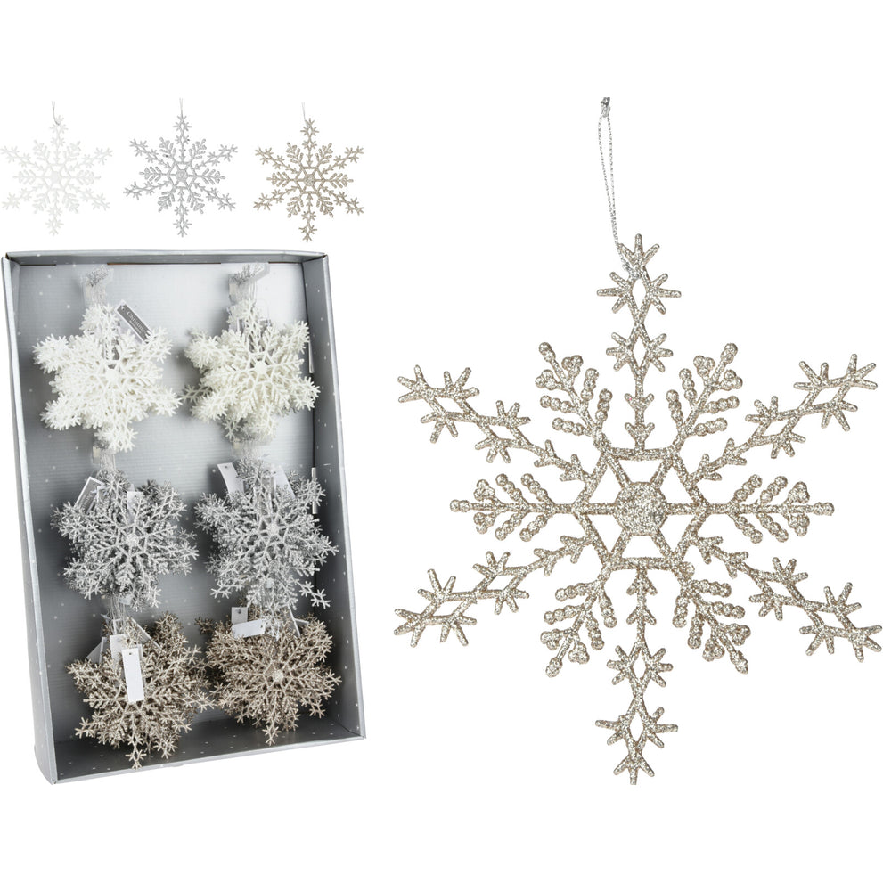 SCHNEEFLOCKE HÄNGEDEKO 15CM 3FACH SORTIERT MIX GLITZER