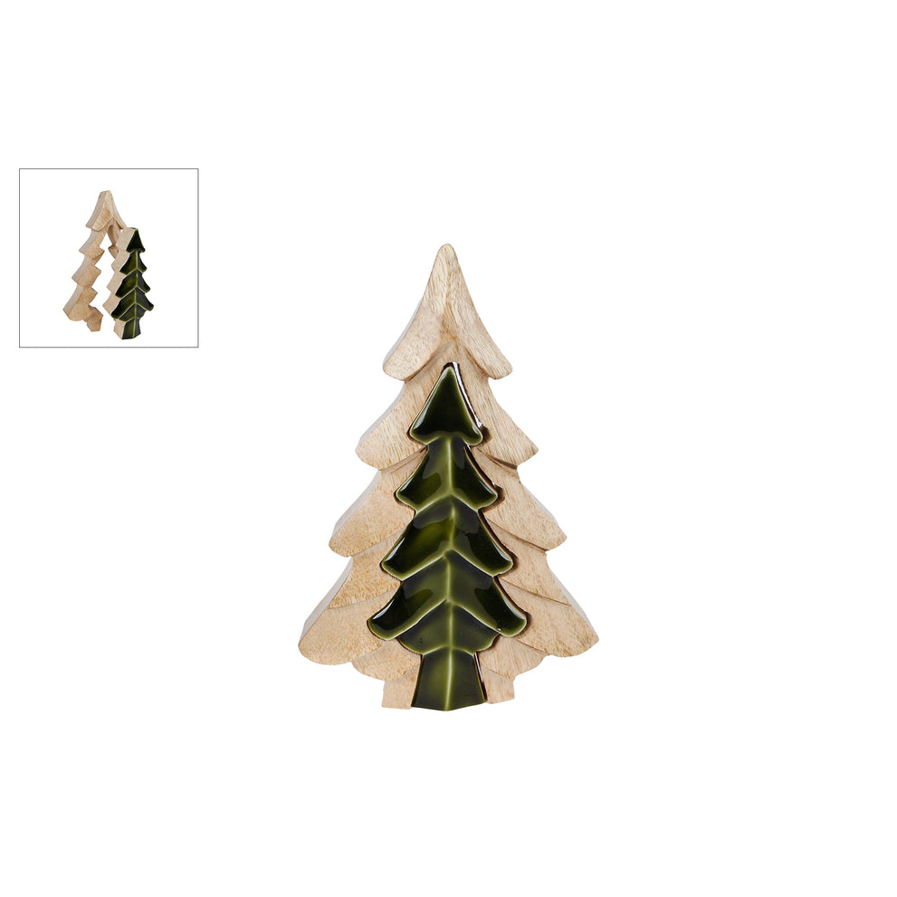 Skulptur "3D Kiefer" S grün/natur Mango 15x10x2,5cm