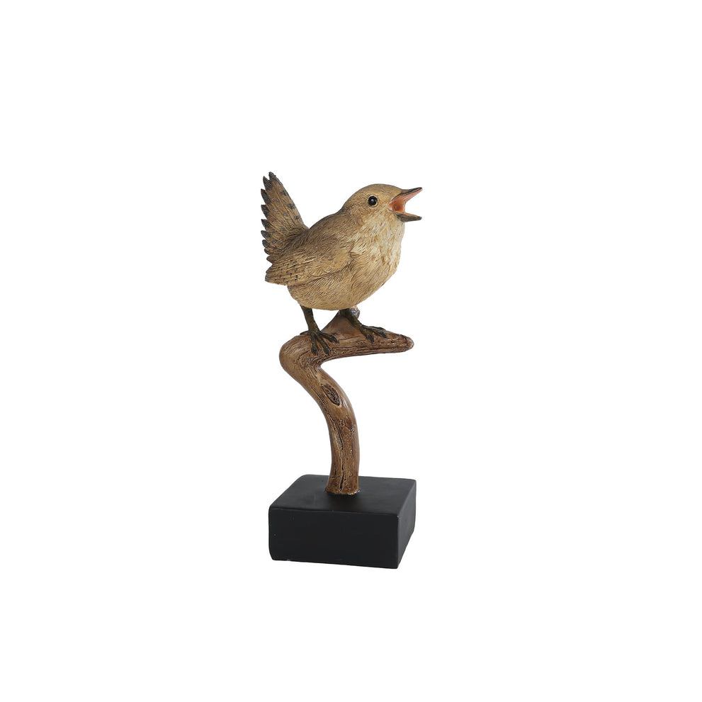 Sculptuur "Bird Branch" op standaard beige/bruin polystone 10x7,5x21cm