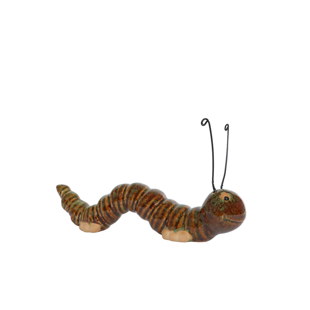 Sculptuur "Caterpillar" S bruin/groen aardew 15x3,5x6cm