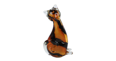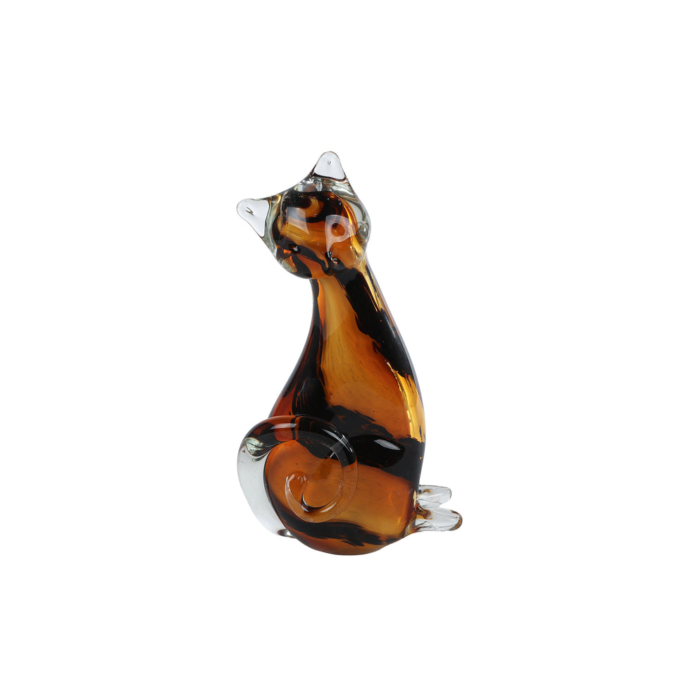 Skulptur "Katze" aus Bernstein/schwarzem Glas, 12x6x21cm