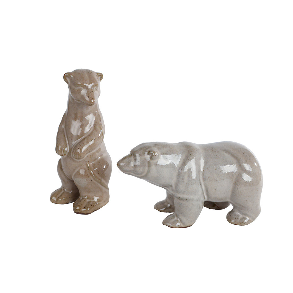 Skulptur "Eisbär" grau, 2er-Set, Keramik, 15,5x6,5x8cm