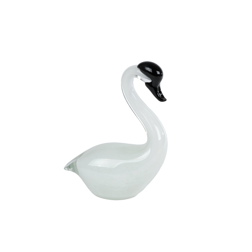 Skulptur "Schwan" aus weißem Glas, 14x7x20cm