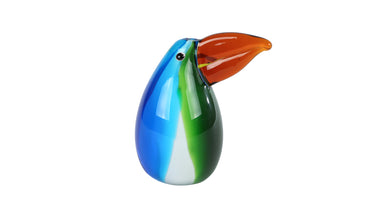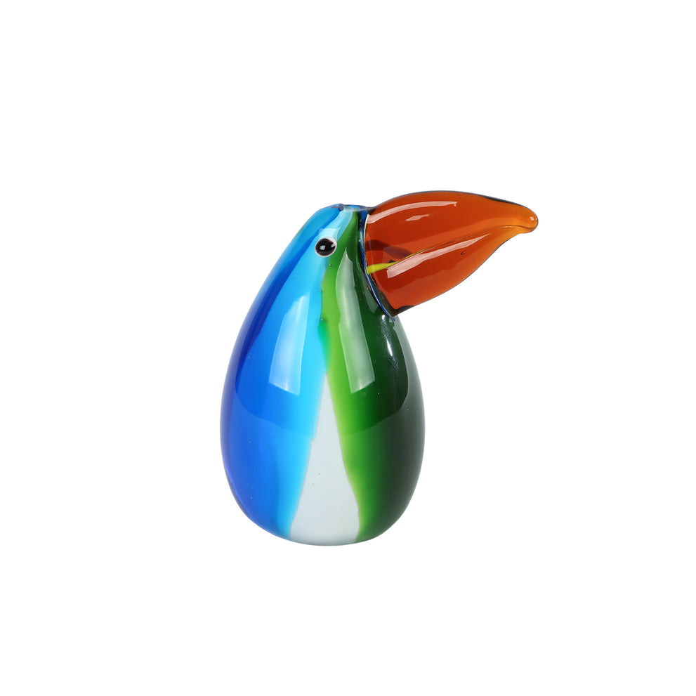 Skulptur „Tukan“ aus blau/grünem Glas, 11,5 x 8 x 13 cm