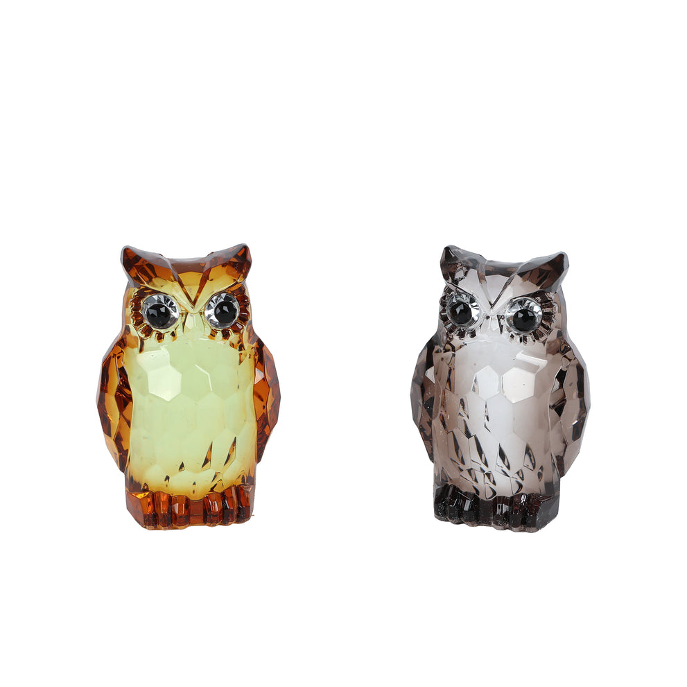 Skulptur "Eule" grau/braun, 2er-Set, Acryl, 4x4x7cm