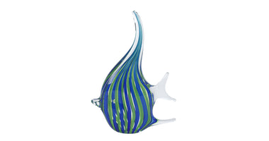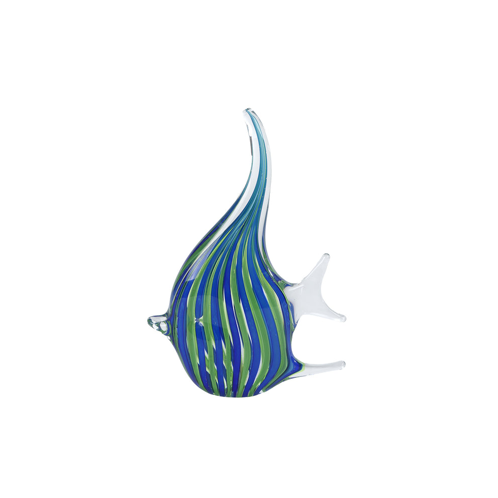 Skulptur "Fisch" aus blau/grün gestreiftem Glas, 13x4x21cm
