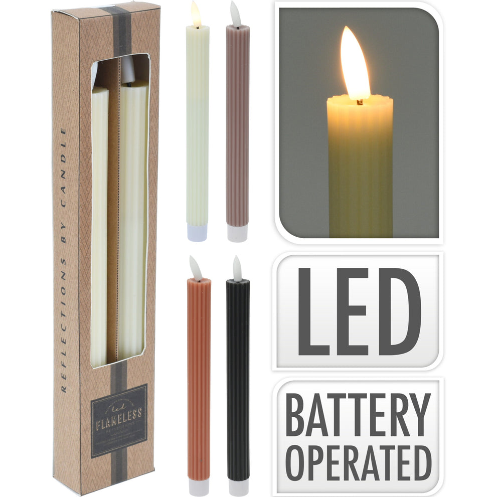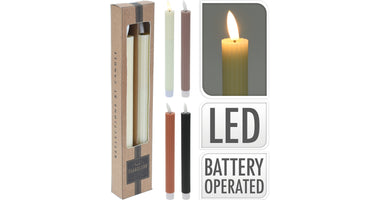 SET 2 DINNERKERZEN MIT LED D2,2 H24CM 4 ASS. FARBEN EXKL. 2X AAA