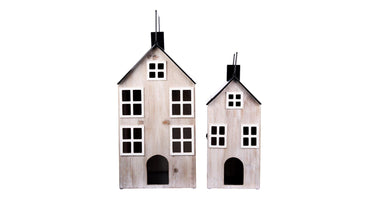 SET MIT 2 HOLZ-LATERNEHÄUSERN 34x33x66CM