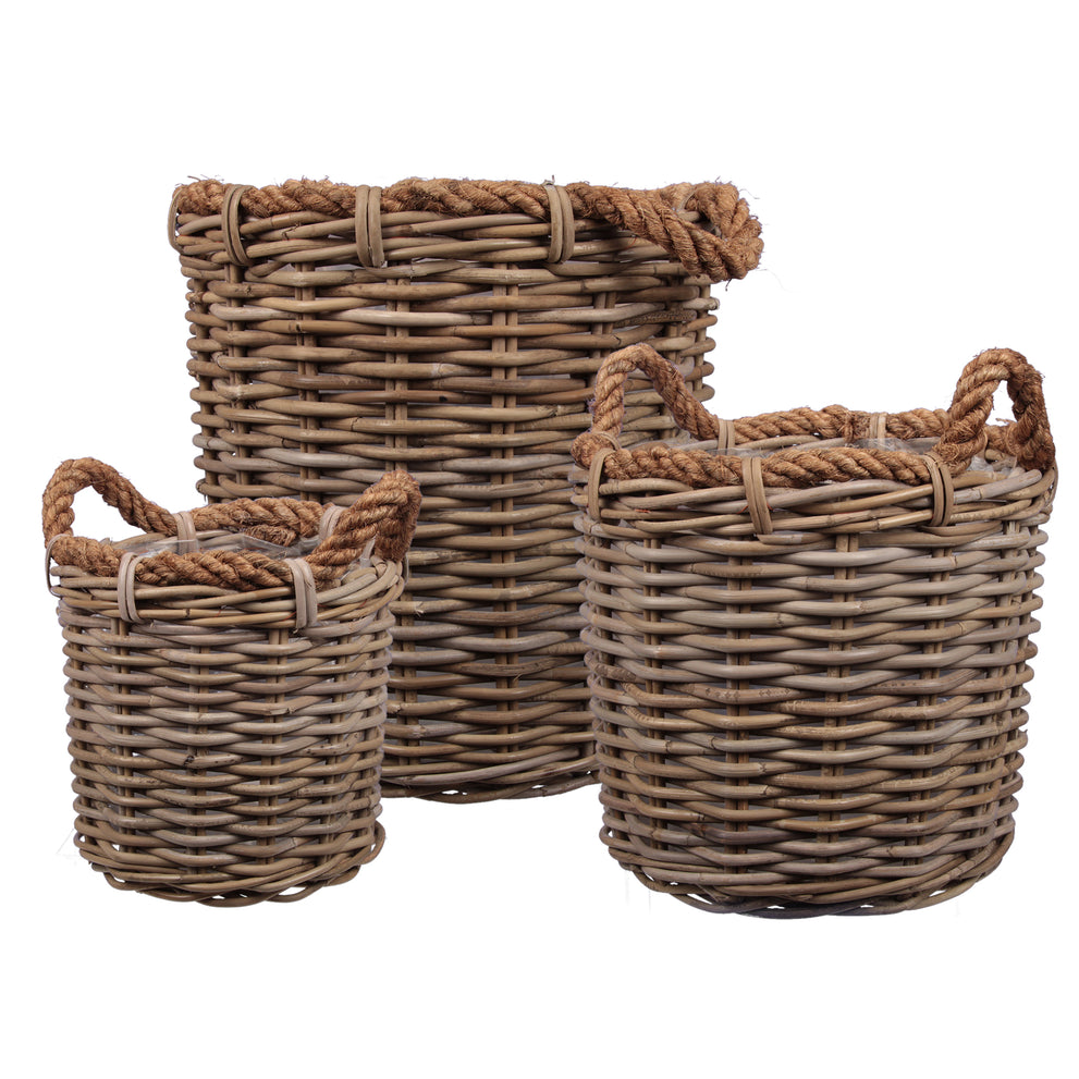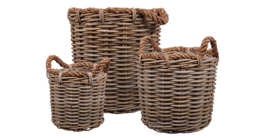 set 3 kubu basket round w/handle natural 30/36/46 cm
