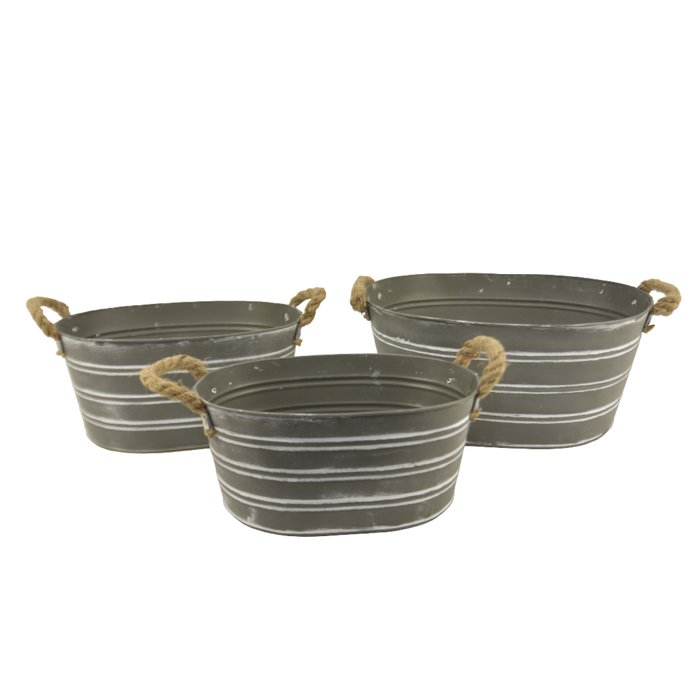 Set/3 zink ovaal met jute touw Grijs-wit