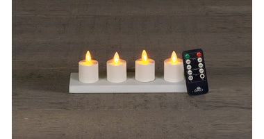 SET 4ST AUFLADBARE BEWEGLICHE FLAMMEN-TEELICHTER WEISS D3,8 H6CM