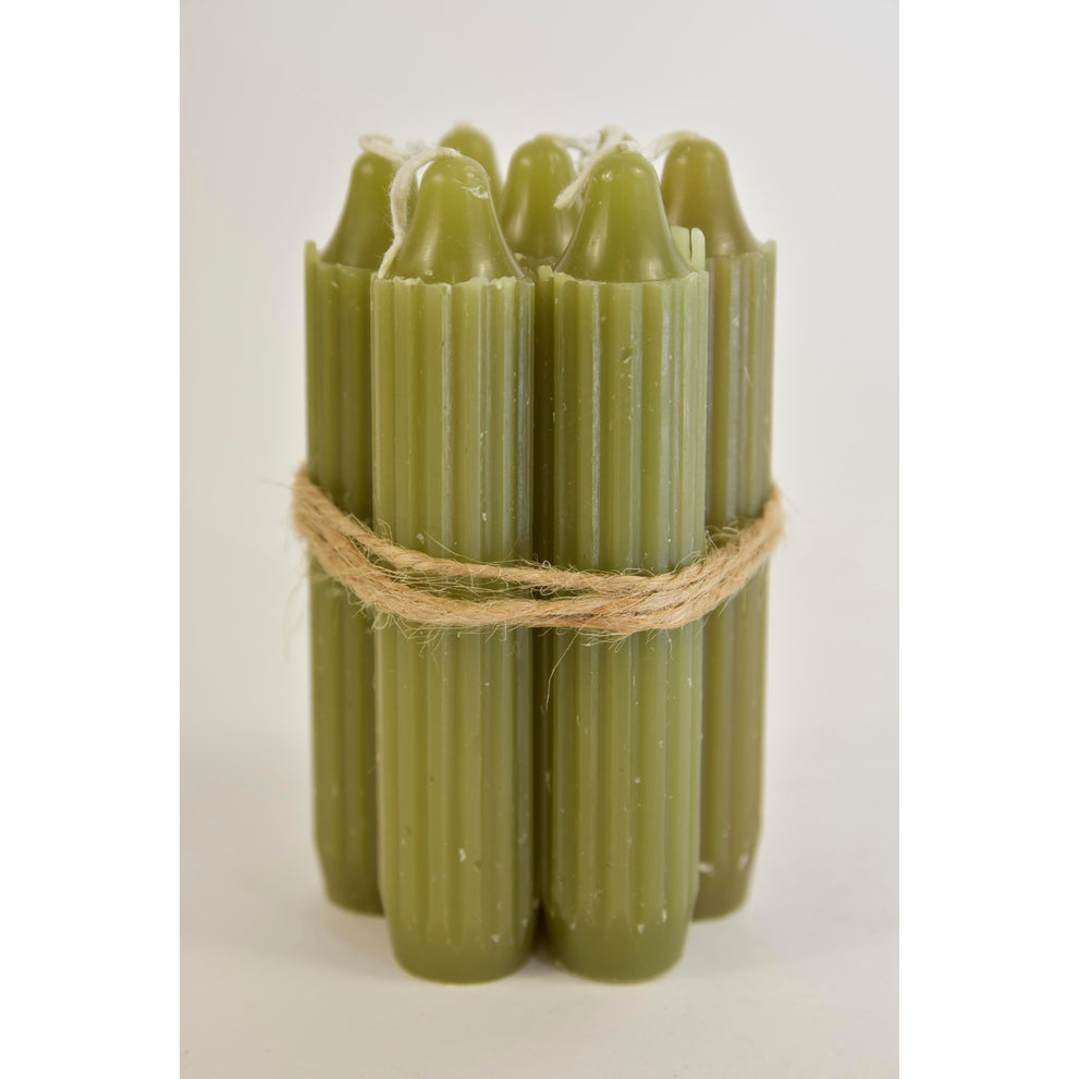 Set 7 Bleistift Kegel Kerze h. 11cm Moosgrün