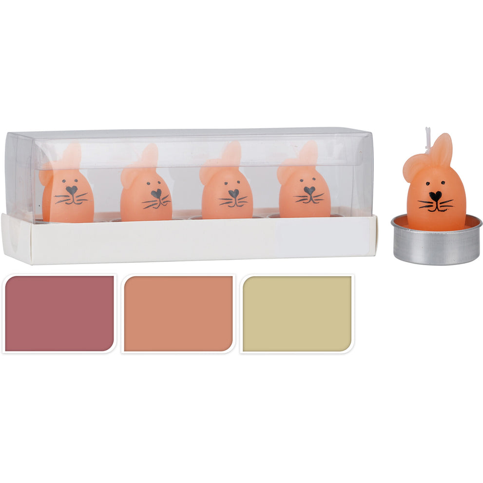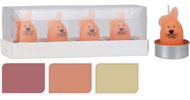 SET MIT 4 TEELICHTERN HÄSCHEN 3 VERSCHIEDENE FARBEN