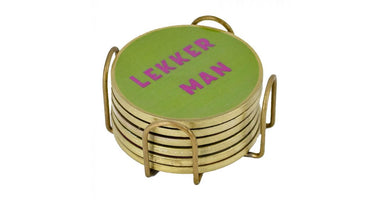 Set mit 6 Untersetzern mit Aufschrift im Ständer 10x10x5cm