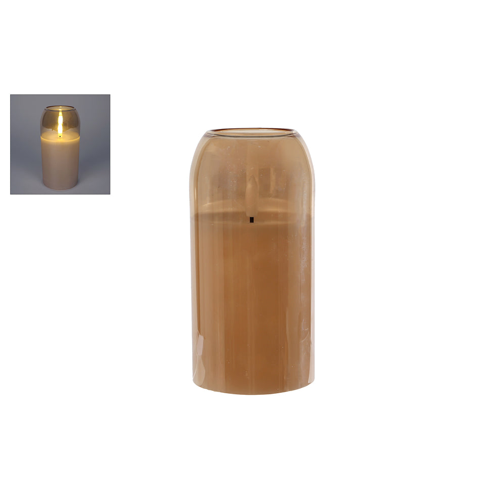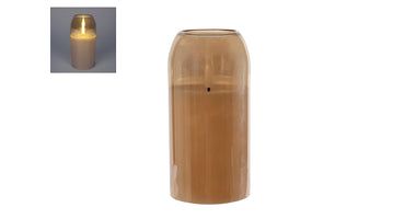 LED-Stimmungsleuchte "Kaisa" L, bernsteinfarbenes Glas/Kerze, 7,5x7,5x15cm