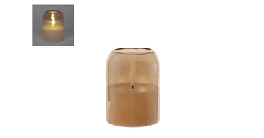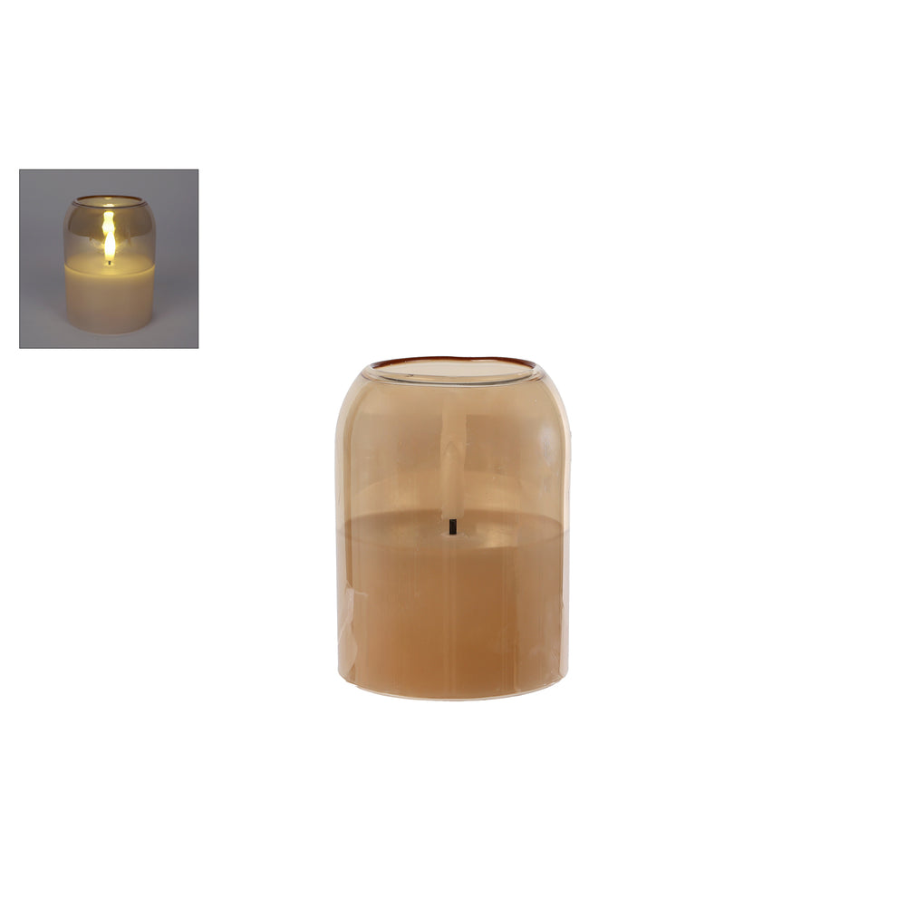 LED-Stimmungsleuchte "Kaisa" S, bernsteinfarbenes Glas/Kerze, 7,5x7,5x10cm
