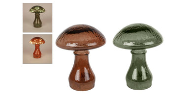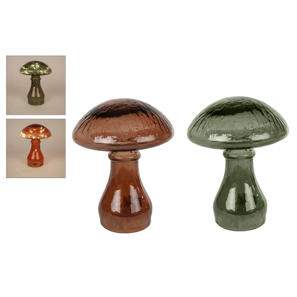 Sfeerverlichting LED "Mushroom" amber/groen 2 assortie glas 13,5x13,5x18cm (excl. 3xAAA)