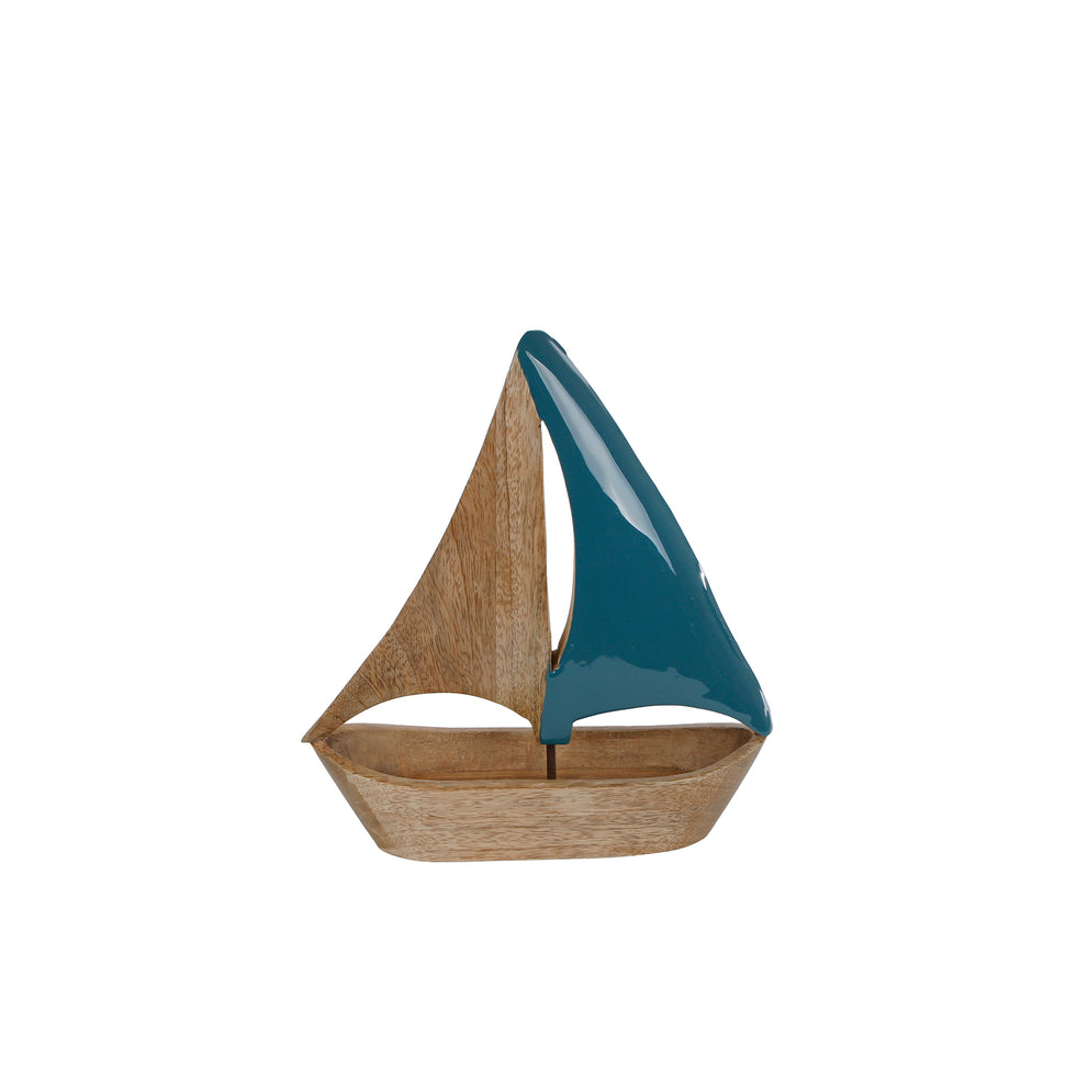 Skulptur Boot "Segel" S blau/natur Mango 25x23x3cm