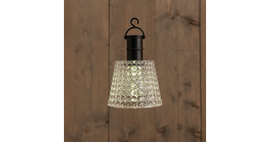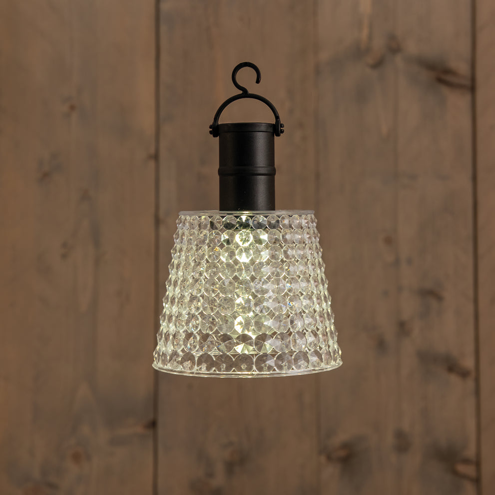 SOLAR-HÄNGELEUCHTE TRANSPARENT 12,5X12,5X16CM 1LED WARMWEISS
