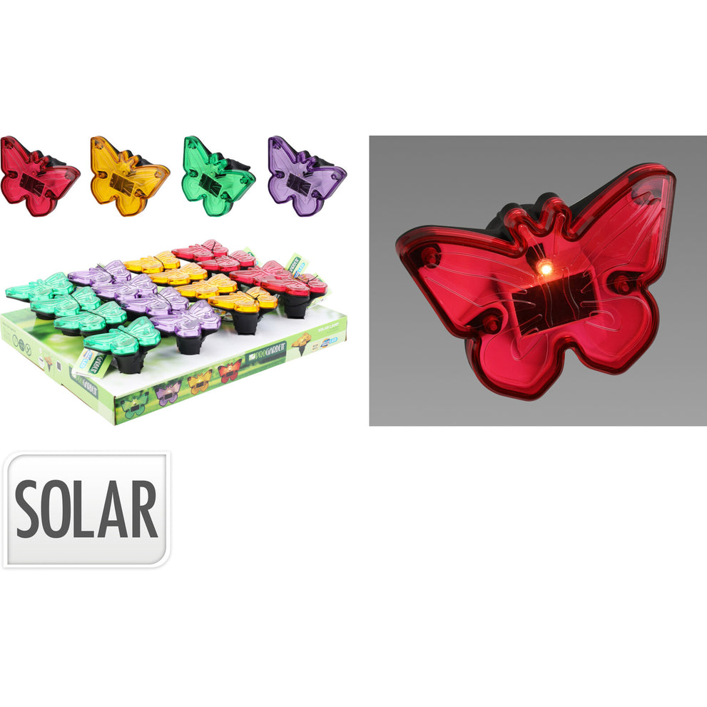 SOLARLEUCHTE SCHMETTERLING 9X9X8,5CM 4 VERSCHIEDENE FARBEN IM DISPLAY