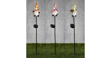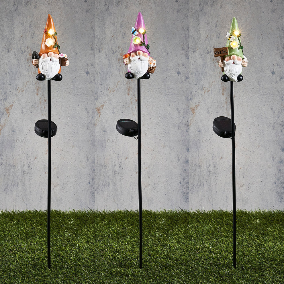 Solar tuinsteker gnoom led groen oranje paars warm wit 3 ass