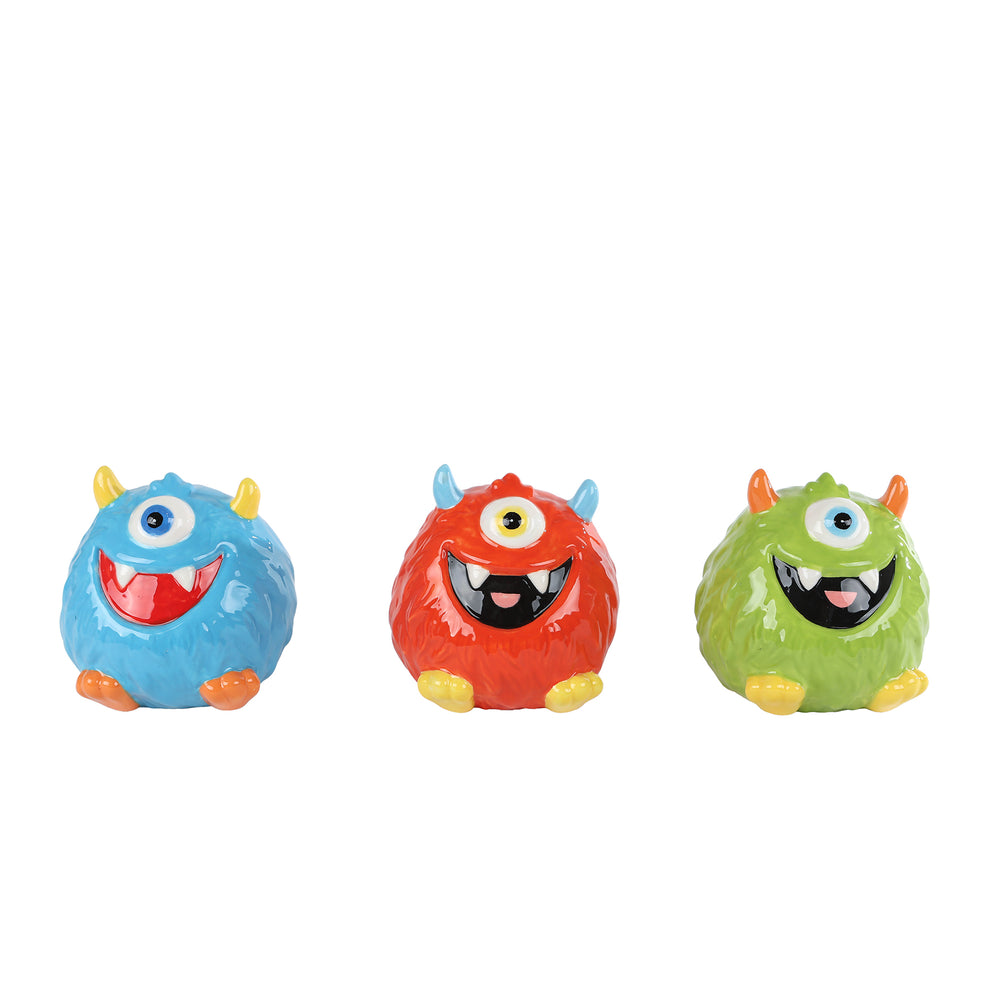 Spardose "Monster" blau/rot/grün, 3er-Set, Keramik, 8x8x8cm