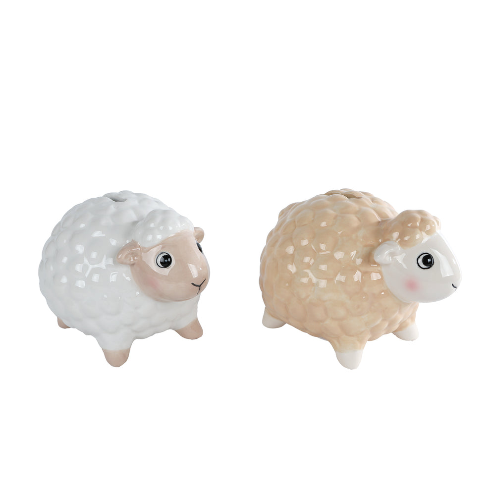 Spaarpot "Sheep" wit/beige 2 assortie aardewerk 12x10x9cm