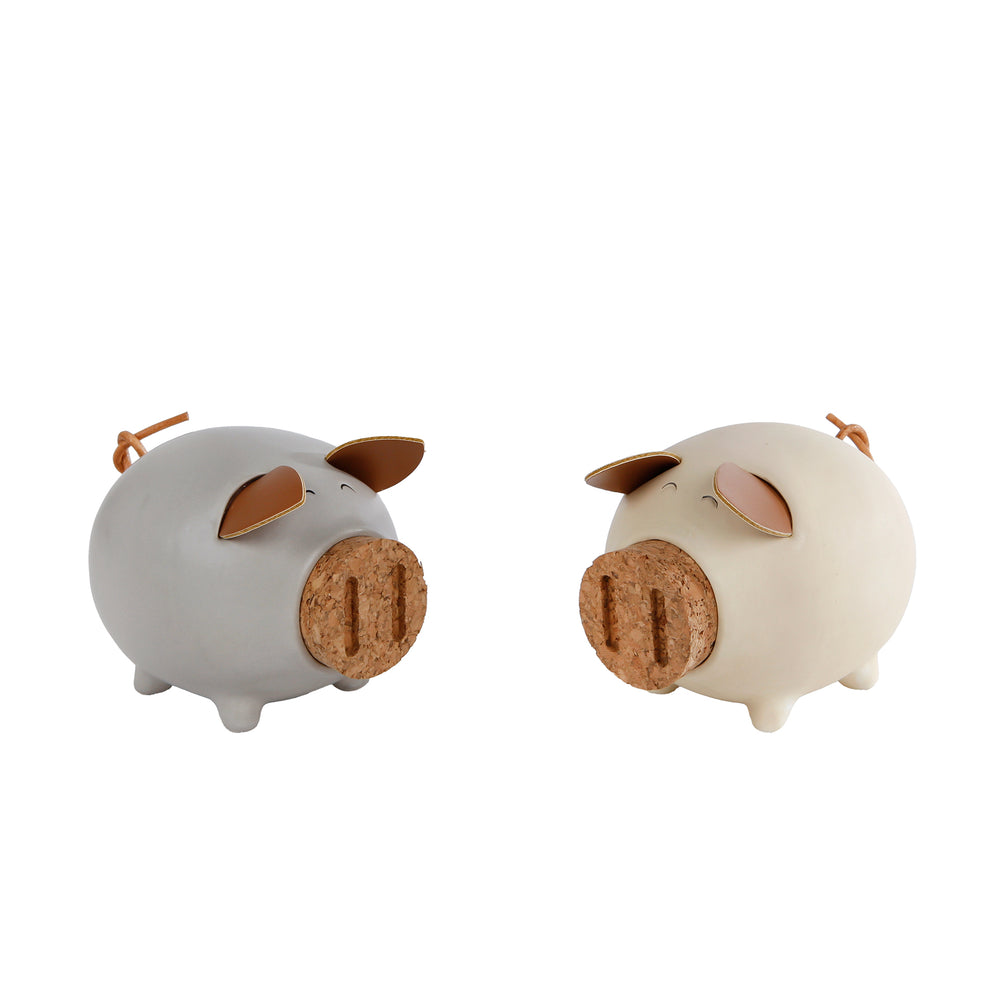 Spardose "Schwein" creme/beige 2fach sortiert Steingut 12x9,5x9cm