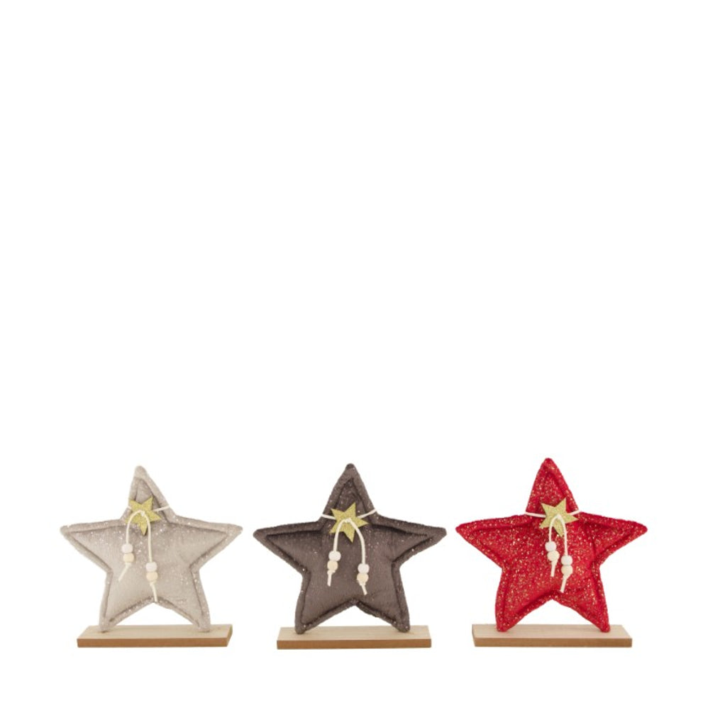 Stern Stoff mit Holzsockel 18.5x4x18.5cm 3 Rot Mix
