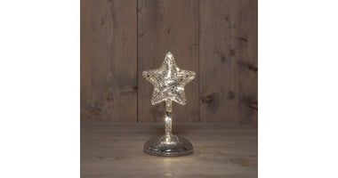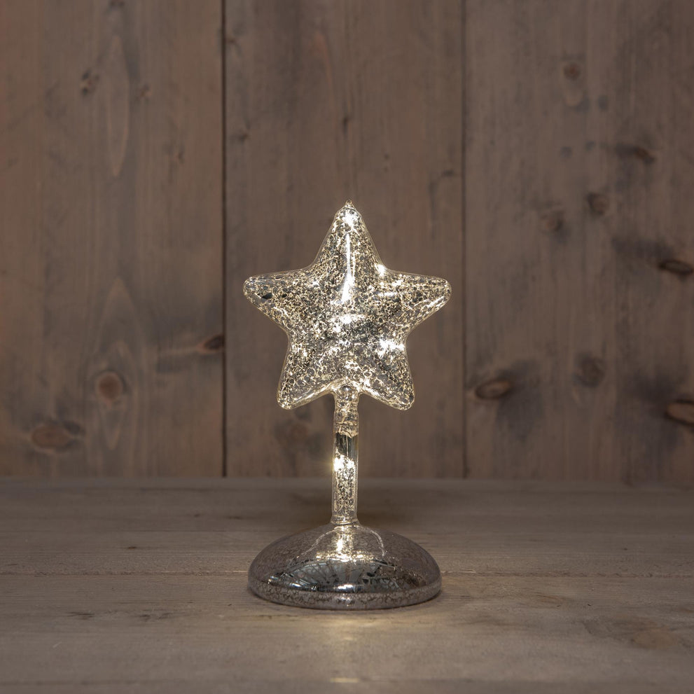 LED-Tischleuchte aus Glas auf Fuß, batteriebetrieben mit Timer, H19cm, silber